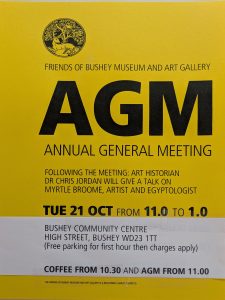 Following the meeting: Art Historian Dr Chris Jordan will give a Talk on Myrtle Broome, Artist and Egyptologist